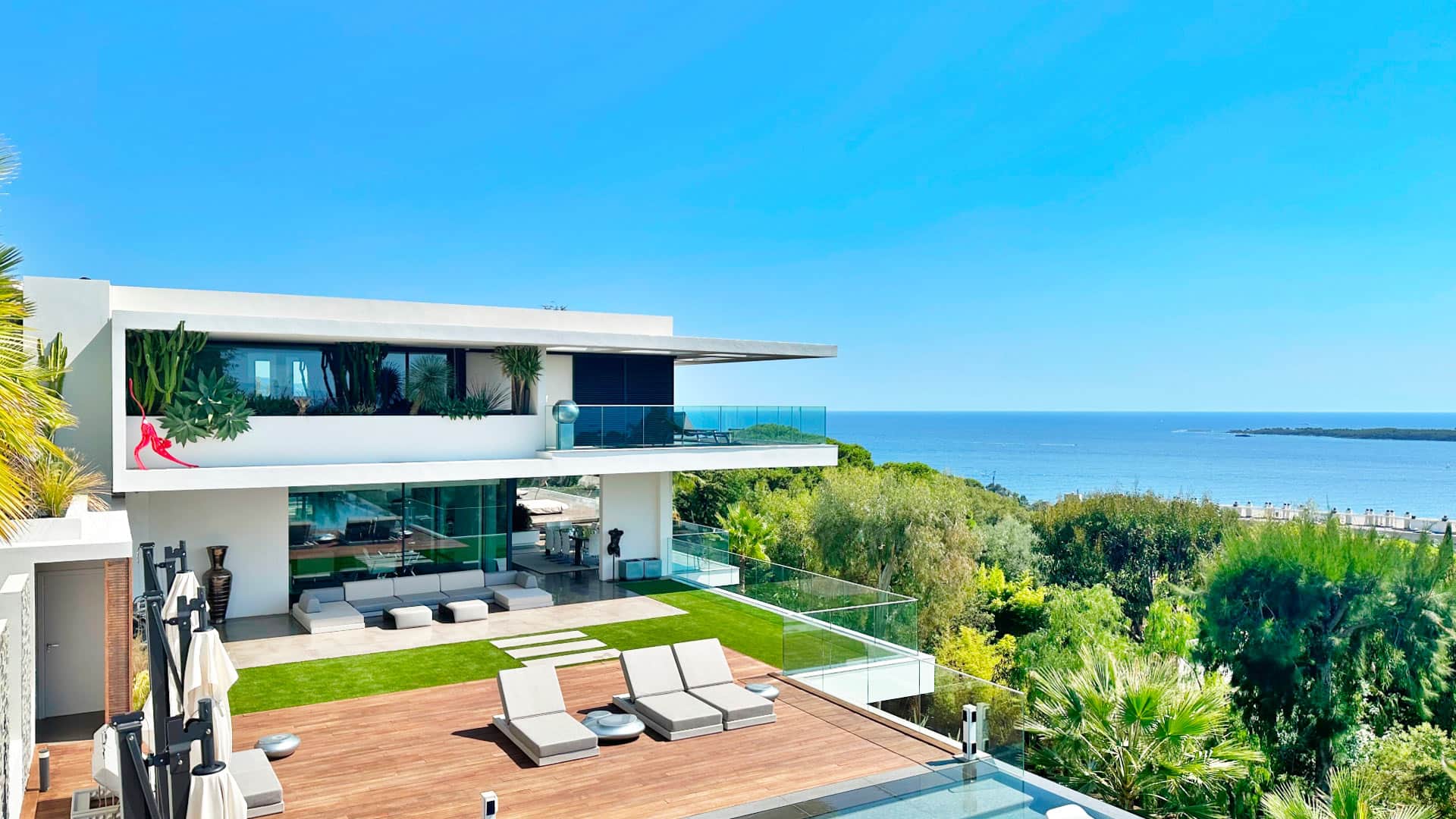 This magnificent 8 bedroom villa set in the hills of Cannes offers a luxurious and unforgettable living experience. With its perfect blend of style and class, it offers spacious rooms, a full spa, professional quality cinema and beautiful gardens with panoramic views of the sea, city and islands.