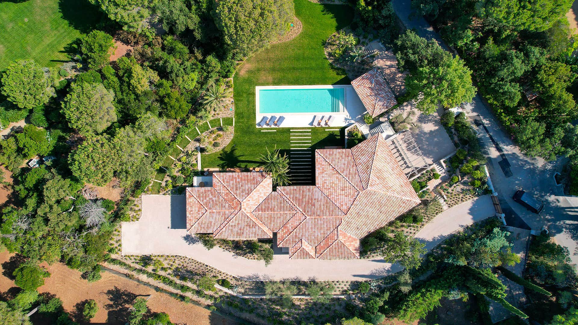 Superb 5-bedroom villa, located in La Pointe de L'Ay, in the Parks of Saint-Tropez. Wellness area with gym, hammam, sauna and massage room, large garden, terraces, petanque court, pool house and outdoor pool.